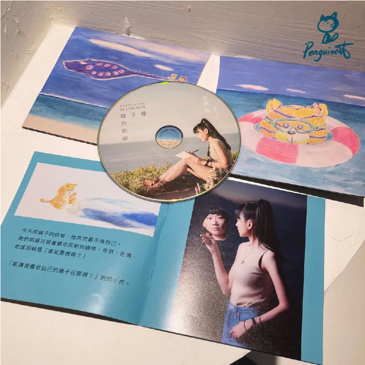 企鵝貓為此實體EP繪製插畫與周邊商品,結合⾳樂、⽂字與圖像,同時建構出作品概念。
